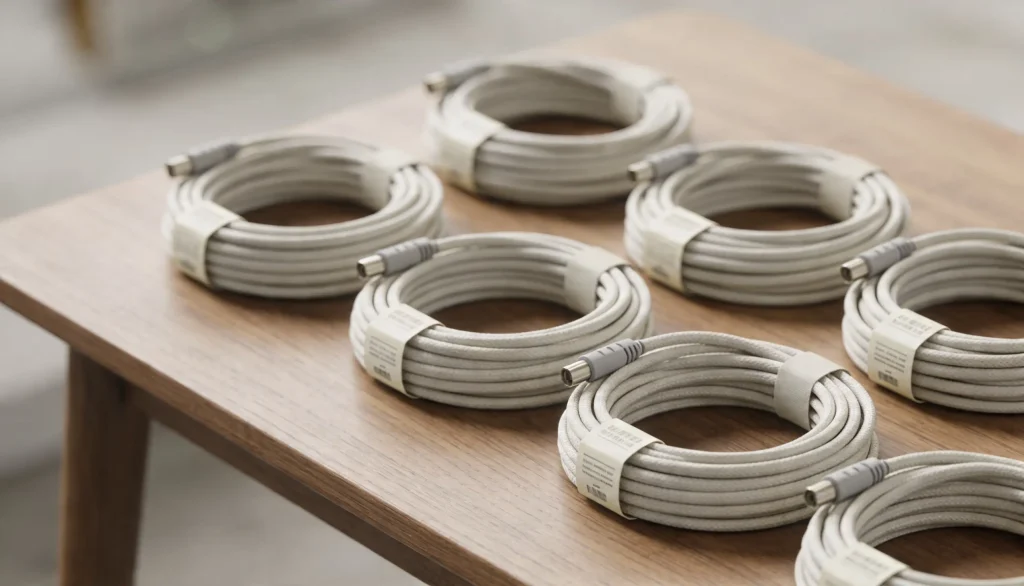 Dwustronny rzep to standard w porządkowaniu kabli. W przeciwieństwie do jednorazowych opasek plastikowych, taśma rzepowa umożliwia swobodne dokładanie lub wyjmowanie przewodów z wiązki bez konieczności używania narzędzi.